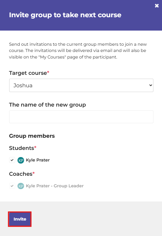 6. Click Invite to create the group in the new course and send the invitations to your participants.